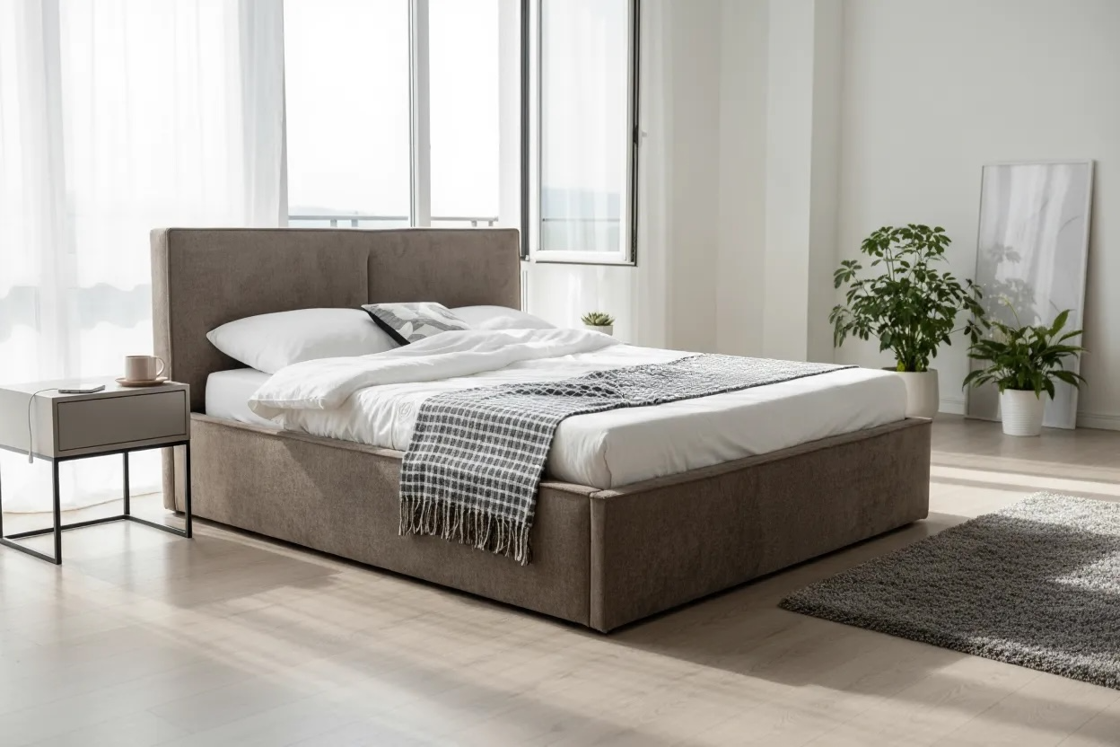Découvrez le lit coffre modèle Maya en tissus chenille: Design et pratique!
