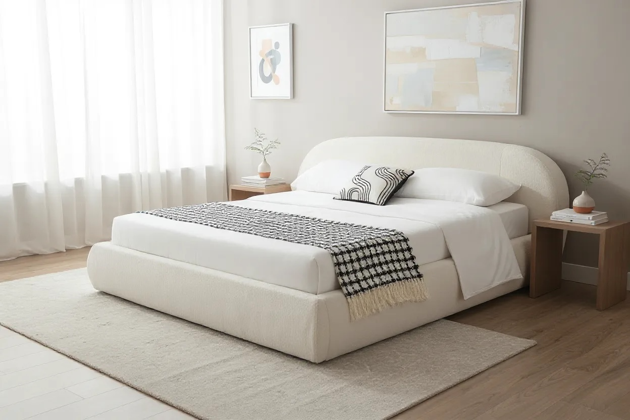 Design : Formes arrondies et tête de lit incurvée pour un look contemporain et cosy